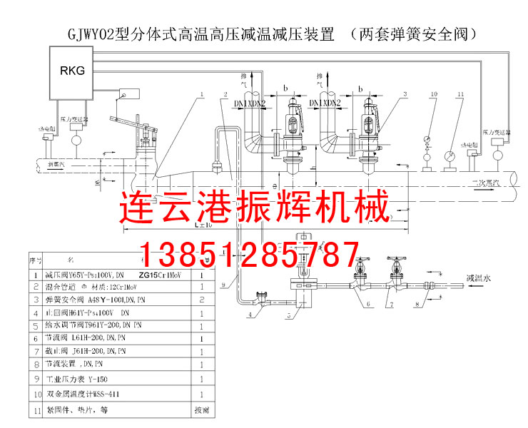 本裝置由減壓系統(tǒng)、減溫系統(tǒng)、安全保護(hù)裝置和自動(dòng)控制裝置所組成。