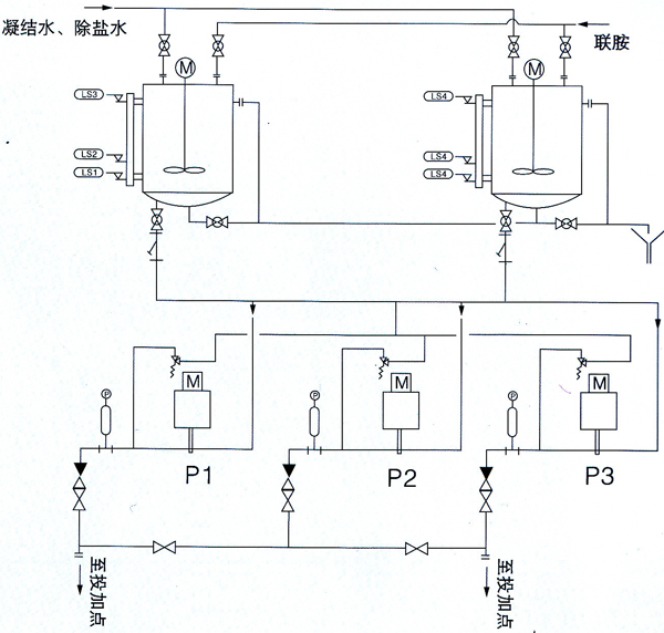 聯(lián)胺加藥裝置工藝原理: